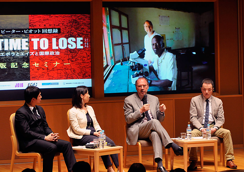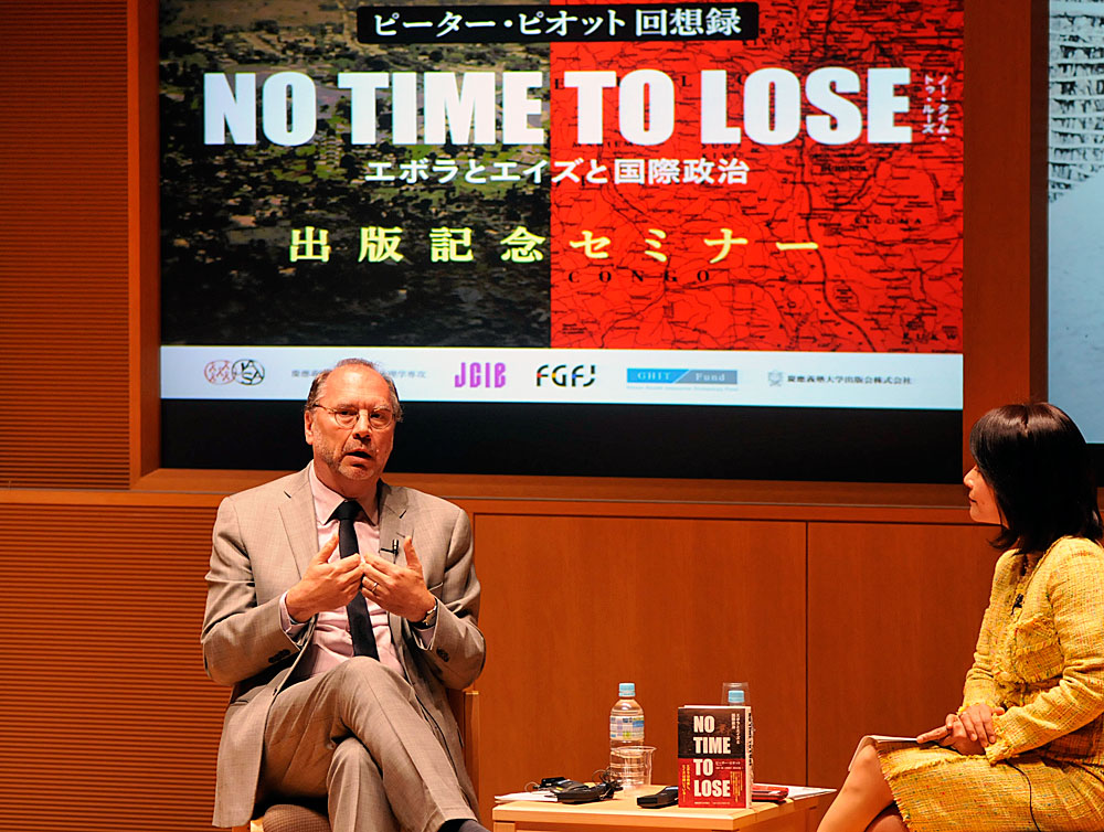 On April 17, Peter Piot, currently the director of the London School of Hygiene and Tropical Medicine, whose memoir No Time to Lose: A Life in Pursuit of Deadly Viruses was recently published in Japanese, spoke in Tokyo about his experience at the front lines of the fight against communicable diseases. As a young researcher in his 20s, Dr. Piot was part of a team that discovered the Ebola virus in Zaire (now the Democratic Republic of Congo). After that encounter, he dedicated himself to treating communicable diseases in Africa at a time when AIDS first started appearing on the scene, and went on to become the founding executive director of the Joint United Nations Programme on HIV/AIDS (UNAIDS) when it was launched in 1996.