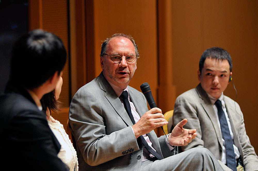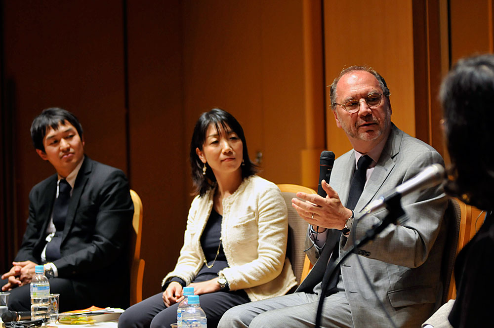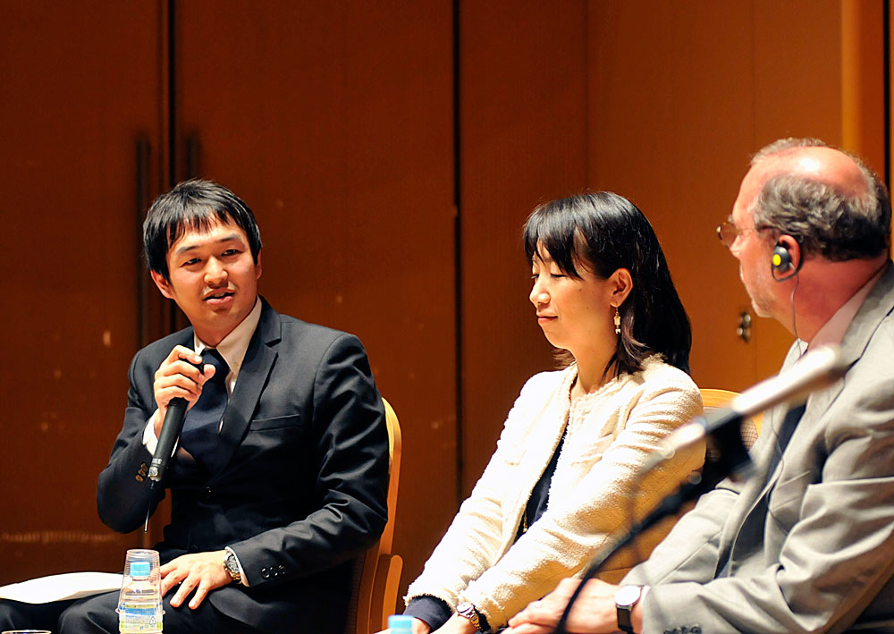 Following Ms. Ebara’s interview, three young Japanese leaders spoke with Dr. Piot in the final session of the seminar: Takuma Kato, deputy medical director, Department of Global Health/Pediatrics at Saku Central Hospital; Yosuke Takaku, representative director of the Japanese Network of People Living with HIV/AIDS; and Yuka Iwatsuki, president of Action against Child Exploitation. Below are several excerpts from the discussion.