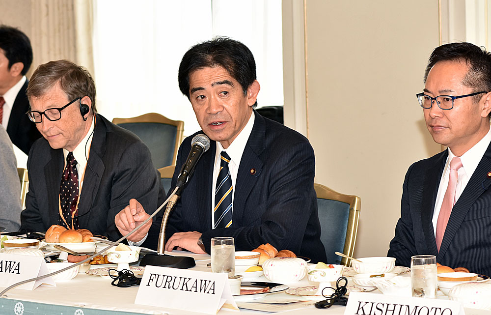 Bill Gates, co-chair of the Bill & Melinda Gates Foundation, met with 14 Diet members of the Friends of the Global Fund, Japan (FGFJ), Diet Task Force to discuss the latest accomplishments of the Global Fund and how Japan can play an even greater leadership role in the battle against the three deadly diseases. They were joined by 11 members of the FGFJ Board of Advisors, as well as Global Fund Executive Director Mark Dybul, and other global health leaders. Gates and Dybul were in Japan to attend the Global Fund’s 5th replenishment preparatory meeting and JCIE’s conference on Universal Health Coverage.
