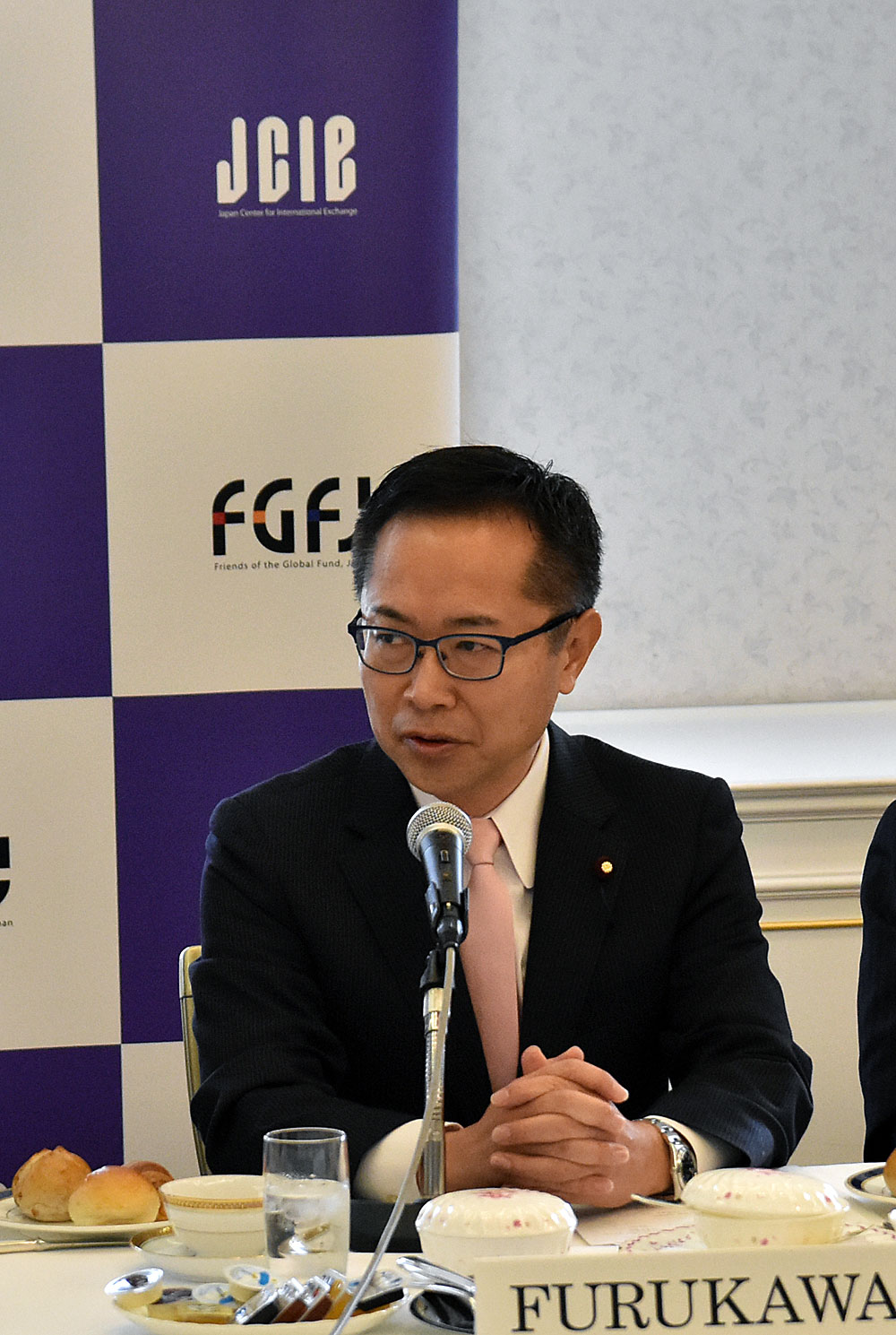 The discussions that followed centered on the expectations for Japan to keep health as an important issue on the agenda at the 2016 Ise-Shima G7 Summit, in keeping with its foreign policy emphasis on human security; for the potential contribution that Japan can make to the treatment of tuberculosis worldwide through the TB diagnostic kits and medicines being developed by Japanese corporations; and for the broader application of e-health. Participants also discussed such topics as the concerns over the predicted hike in medicine prices due to the Trans-Pacific Partnership agreement, the need to overcome discrimination against people living with HIV and AIDS, and the possibility for greater cooperation between Japanese corporations and the Global Fund.