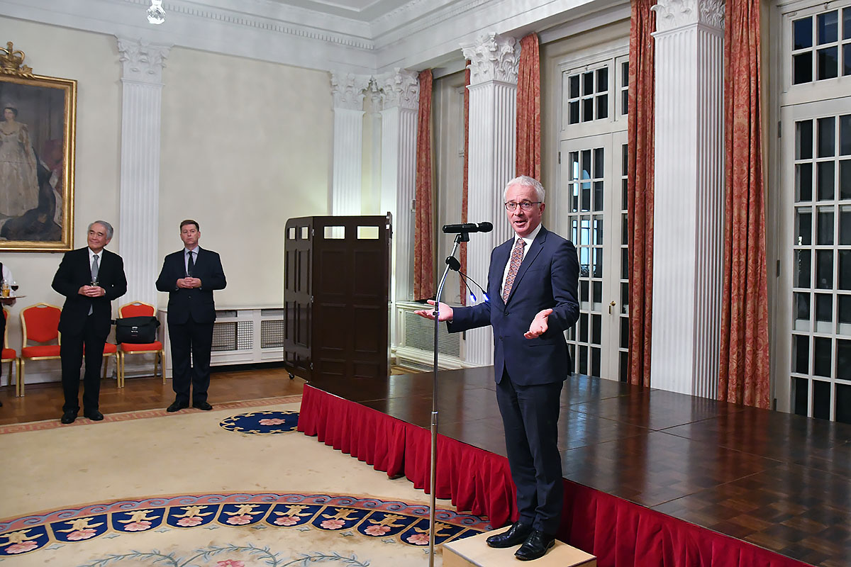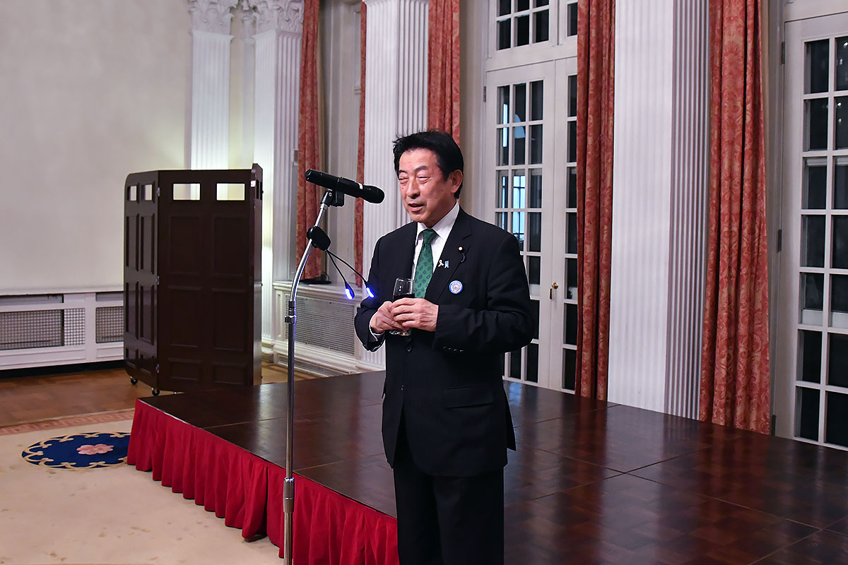 The reception was co-hosted by JCIE and the British Embassy in Tokyo. British Ambassador Paul Madden CMG delivered a welcome speech, and the group of about 90 guests included ambassadors to Japan from a number of African countries, the former Minister of Health Yasuhisa Shiozaki (Chairman of the UK-Japan 21st Century Group), the Hon. Ichiro Aisawa (Co-Chair of Friends of the Global Fund, Japan), and others from civil society, the private sector, academia, and government.